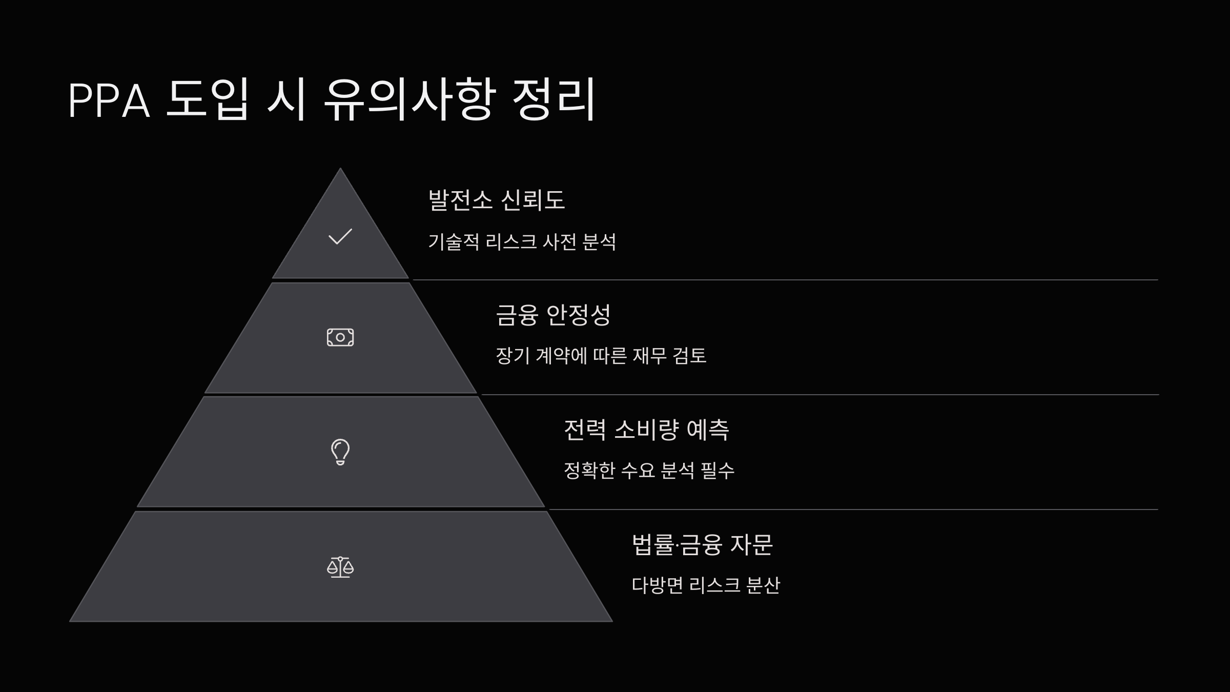 계약기간이 길기 때문에 발전소의 신뢰도, 금융 안정성, 기술적 리스크 등을 사전에 철저히 분석해야 해요.